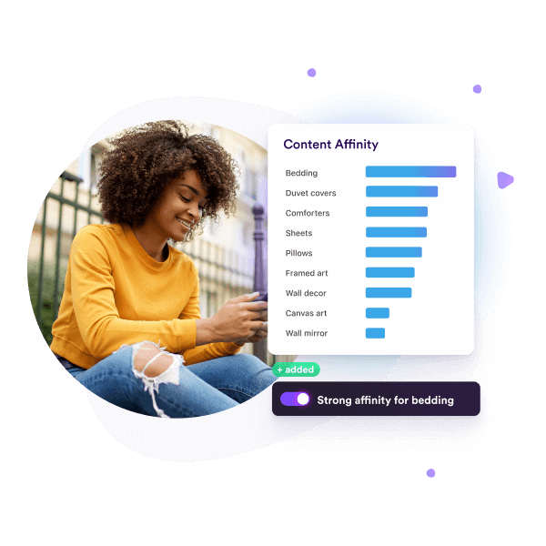 Decision Engine provides advanced machine learning insights on shoppers’ interests, affinities, types of behaviors, and engagement level. This kind of intelligence not only supports meaningful personalization, but provides in-depth customer insight that’s 20x more predictive of customer action than demographic data alone.