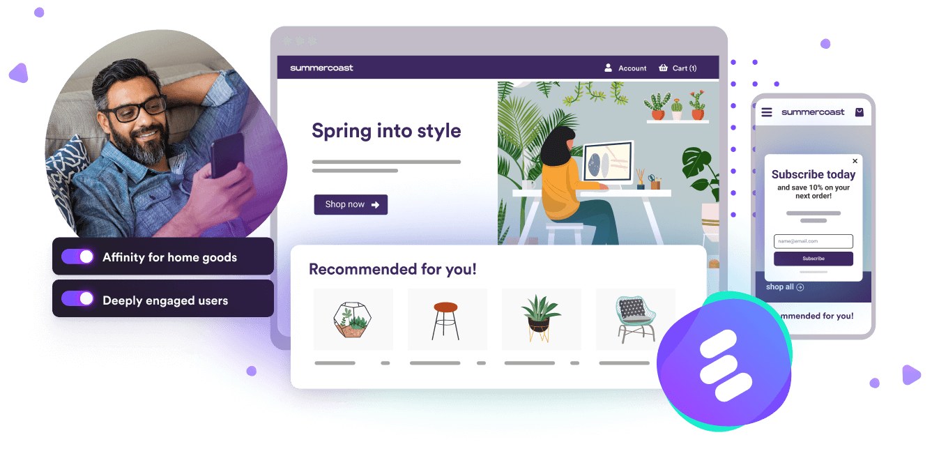 Decision Engine empowers you to guide customers through their shopping journey with experiences personalized across channels —in real time— that lean on machine learning, content affinities, behavioral intelligence, and predictive insights (like the ones that can warn you when a customer is at risk of churn).