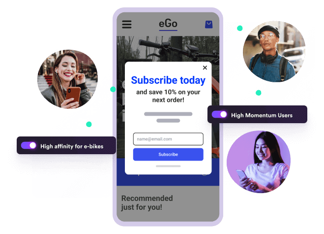 Segment audiences dynamically based on personal interests and real-time behaviors. Segment smarter and target niche audiences (i.e. highly engaged repeat customers who have not converted in the last 3 months) with custom offers, like abandoned cart emails.