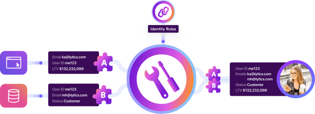 Managing identities can be technical and confusing. And in reality, it can be difficult to de-duplicate or cleanse profiles in the same way when using independent systems to perform the same tasks. At Lytics, we believe in letting one powerful solution do the work, so that your teams don’t have to.