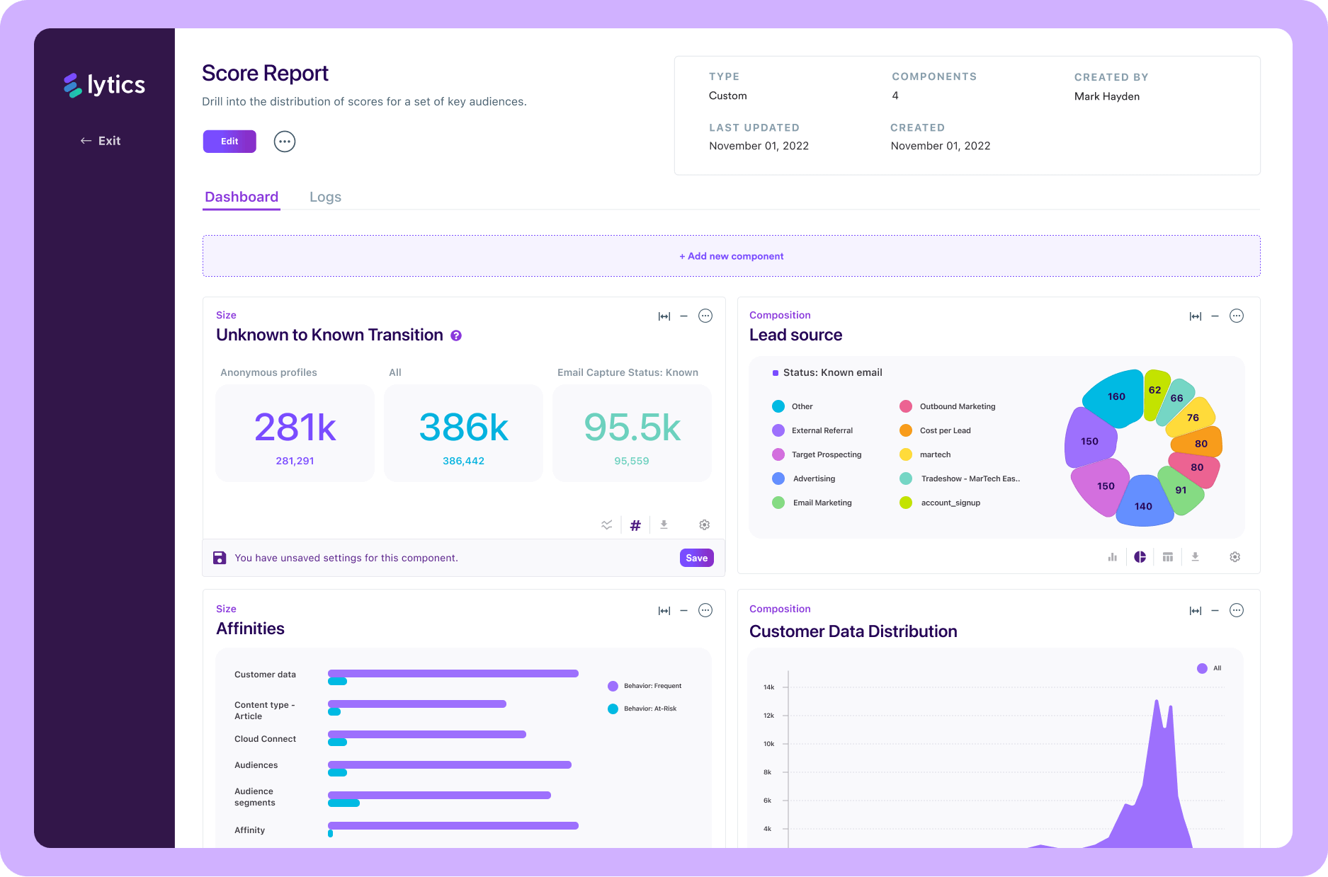 - By promoting data exploration, Lytics Reports ensures a direct path for answering critical questions while also providing a highly consumable platform for surfacing many of our platform’s differentiators — such as Lytics Behavioral Scores and Content Affinity.