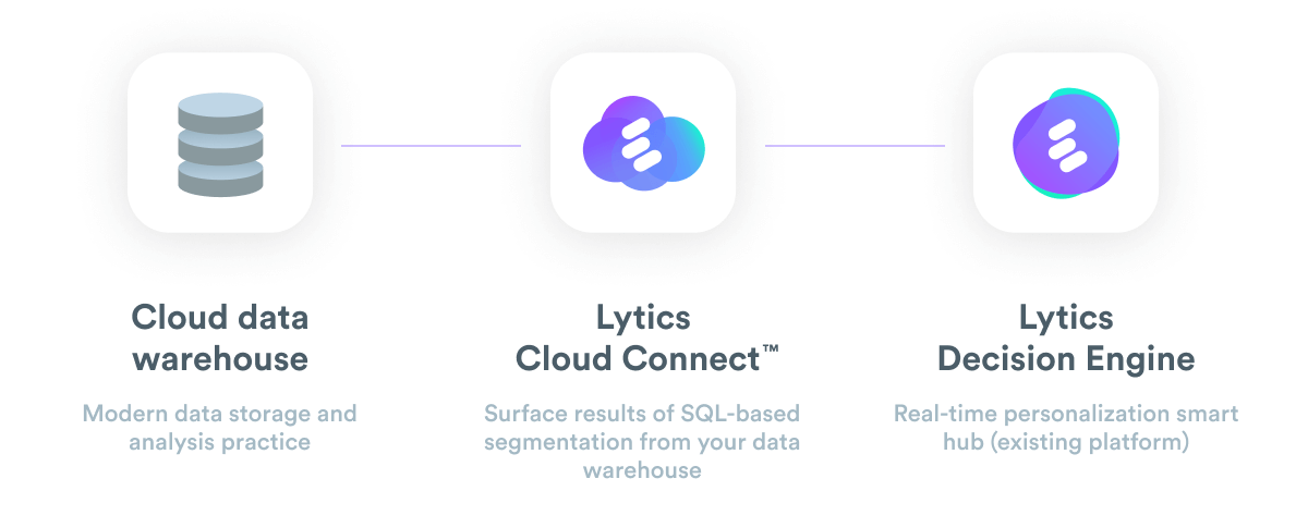 - Your data warehouse with Lytics Cloud Connect and Lytics Decision Engine work together to improve customer experiences by driving personalization at scale.